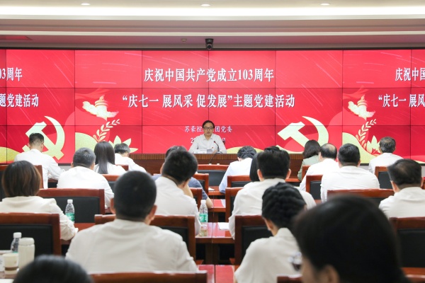 為慶祝中國(guó)共產(chǎn)黨成立103周年,回顧黨的光輝歷程,謳歌黨的豐功偉績(jī),弘揚(yáng)偉大建黨精神,凝聚昂揚(yáng)奮進(jìn)力量,7月1日,蘇豪控股集團(tuán)黨委舉辦“慶七一 展風(fēng)采 促發(fā)展”主題黨建活動(dòng)。集團(tuán)黨委書(shū)記、董事長(zhǎng)周勇出席活動(dòng)并講話,集團(tuán)黨委班子成員參加活動(dòng)。紅心向黨,星耀征程。活動(dòng)中,與會(huì)人員首先集體參觀了集團(tuán)優(yōu)秀星級(jí)黨支部風(fēng)采展示。以黨支部評(píng)星定級(jí)工作為基礎(chǔ),風(fēng)采展集中展示了集團(tuán)2023年度6家五星級(jí)黨支部和18家四星級(jí)黨支部的黨建工作成果,通過(guò)搭建互學(xué)互鑒平臺(tái),進(jìn)一步強(qiáng)化示范帶動(dòng)作用,激勵(lì)廣大基層黨組織奮發(fā)進(jìn)取、爭(zhēng)先創(chuàng)