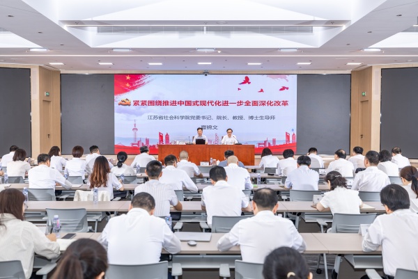 按照省委統(tǒng)一部署,8月19日,學(xué)習(xí)貫徹黨的二十屆三中全會(huì)精神省委宣講團(tuán)報(bào)告會(huì)在蘇豪控股集團(tuán)舉行。省委宣講團(tuán)成員,省社科院黨委書(shū)記、院長(zhǎng)夏錦文作專(zhuān)題輔導(dǎo)報(bào)告。集團(tuán)黨委書(shū)記、董事長(zhǎng)周勇主持報(bào)告會(huì)。報(bào)告會(huì)上,夏錦文以《緊緊圍繞推進(jìn)中國(guó)式現(xiàn)代化進(jìn)一步全面深化改革》為題,從深刻把握全會(huì)的重大意義,深刻把握新時(shí)代以來(lái)全面深化改革的重大成就,深刻把握進(jìn)一步全面深化改革的總目標(biāo)、重大原則和重大舉措,深刻把握黨的領(lǐng)導(dǎo)是進(jìn)一步全面深化改革、推進(jìn)中國(guó)式現(xiàn)代化的根本保證等六個(gè)方面進(jìn)行了系統(tǒng)闡述和深入解讀。報(bào)告主題鮮明,站位高遠(yuǎn),
